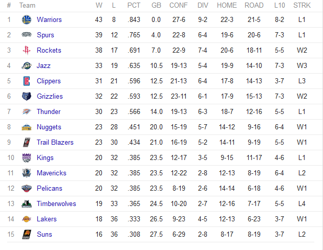 Nba Standings West